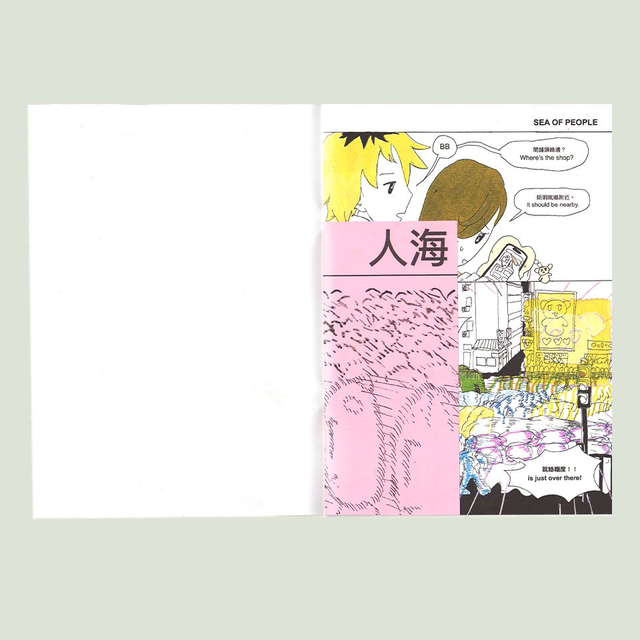 Sea of People by Kayla Lui, BB gets lost in the Sea of people on the way to the pop-up, A4 4 Colour risograph comic, 20 pages